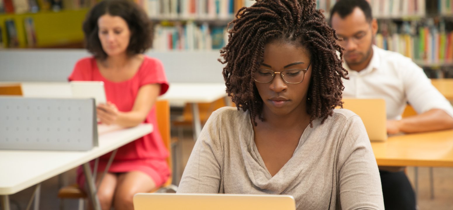 American Student Studying at Library